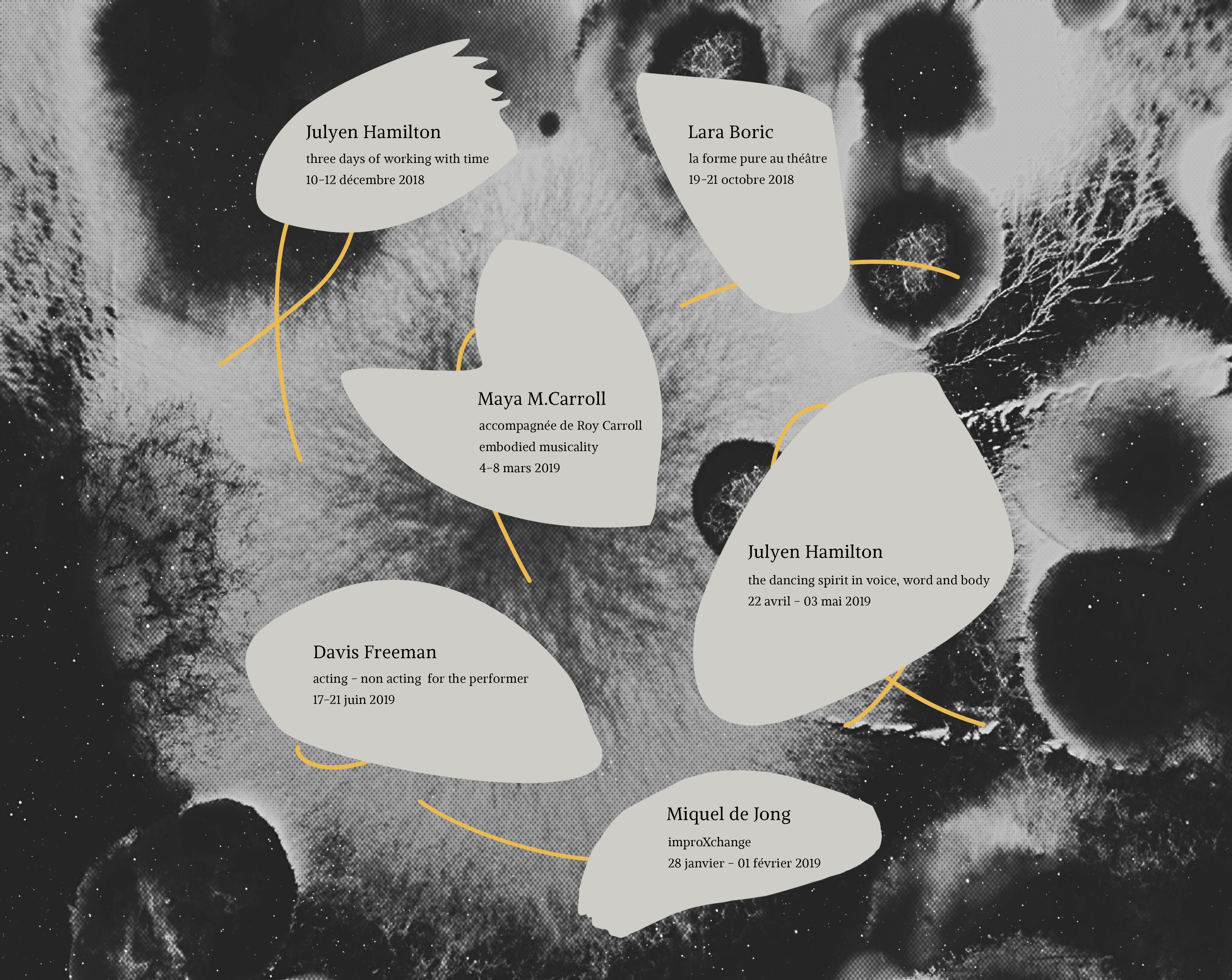 Miquel de Jong (Pays-Bas, 1971), a étudié au Conservatoire Royal de la Haye depuis l’âge de 10 ans et obtient son diplôme en 1989. Après avoir travaillé 6 ans pour le Scapino Ballet Rotterdam, il arrive en France en 1995 où il travaille comme premier soliste pour l’Opéra de Lyon, dirigé alors par Yougos Loukos, et travaille pour de grands chorégraphes tels que William Forsythe, Jiri Kylian, Mats Ek et Ohad Naharin. En 2002, Miquel commence à travailler auprès d’Angelin Prejlocaj avant de rencontrer Russel Maliphant en 2003, dont le travail jouera un rôle majeur dans son parcours. Il décide de s’établir à Londres où il appréhende des pratiques diverses et variées : Improvisation, Contact Improvisation, Capoeira, Acrobaties, Yoga, Taichi, Rolfing (fascia thérapie), et méditation. Il découvre alors une passion pour l’enseignement de l’improvisation et développe sa propre méthode, qui s’établit en deux parties : le mouvement pré-réflexif et la composition de consensus. Cette dernière s’est développée et a donné lieu a de nombreuses performances issues de l’ImproXchange. Miquel est aujourd’hui assistant de nombreux chorégraphes et metteurs en scène, et enseigne non seulement dans les écoles supérieures de danse mais aussi dans les départements de musique et de cirque. Ses workshops sont reconnus dans le monde entier.