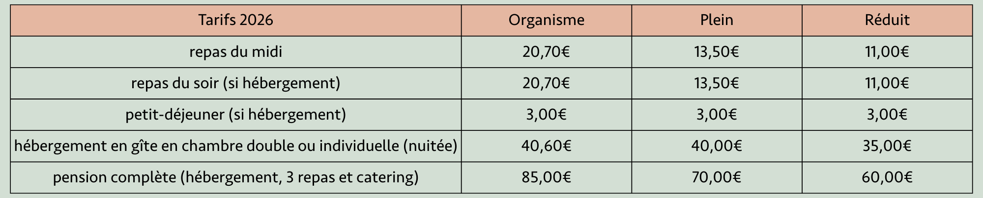 - Frais d’hébergement et de restauration